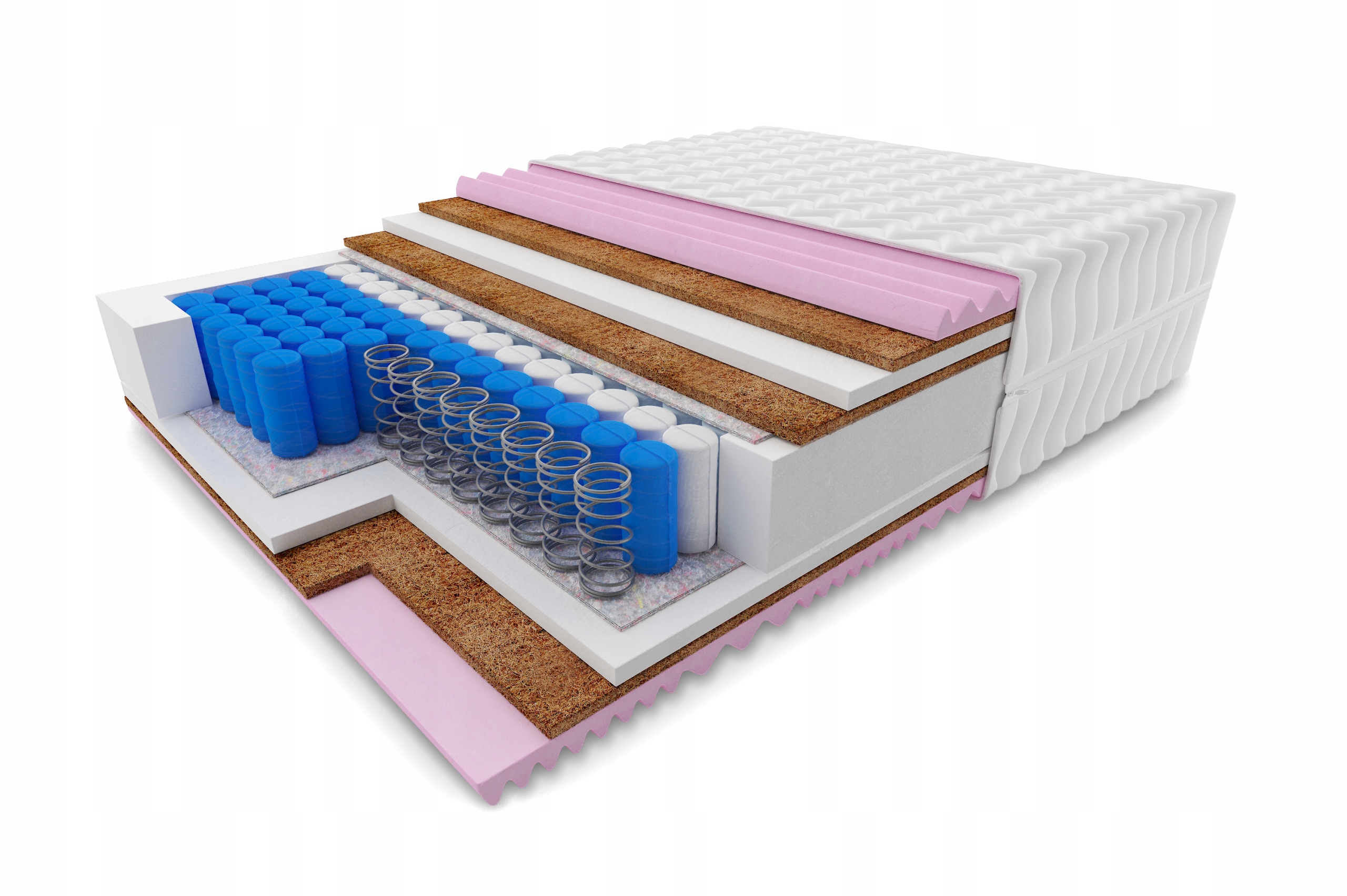 Warstwy kokosu lateksowanego 1200 g/m2 – jest to naturalny surowiec, jego włókna są trwałe, elastyczne i za razem lekkie i przewiewne. Materiał ten charakteryzuje się wysoką odpornością na odkształcenia i zawilgocenie. Funkcją maty kokosowej jest przede wszystkim utwardzenie powierzchni materaca i jego usztywnienie oraz zapobieganie nadmiernemu zawilgoceniu przez poprawienie cyrkulacji powietrza. Włókna kokosu posiadają właściwości antyalergiczne, zapobiegają rozwojowi grzybów i roztoczy.