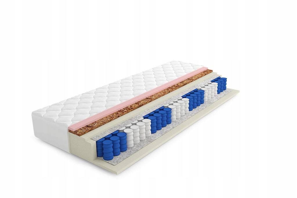 - Warstwa kokosu lateksowanego o grubości 1,2 cm (1200 g/m2) – materiał charakteryzujący się wysoką trwałością i przewiewnością, zapobiegają nadmiernemu zawilgoceniu wewnątrz materaca.