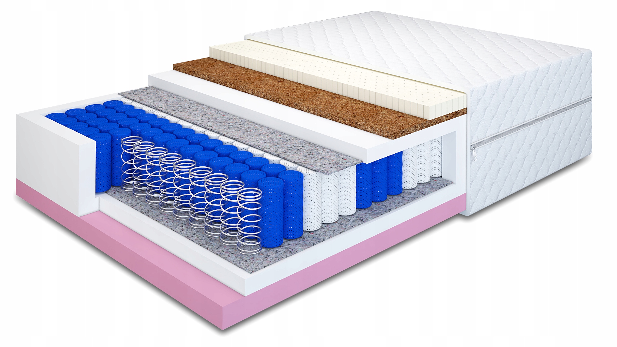 - Przekładka tapicerska (filc) – oddziela wkład sprężynowy od pianki, zwiększa wytrzymałość materaca.