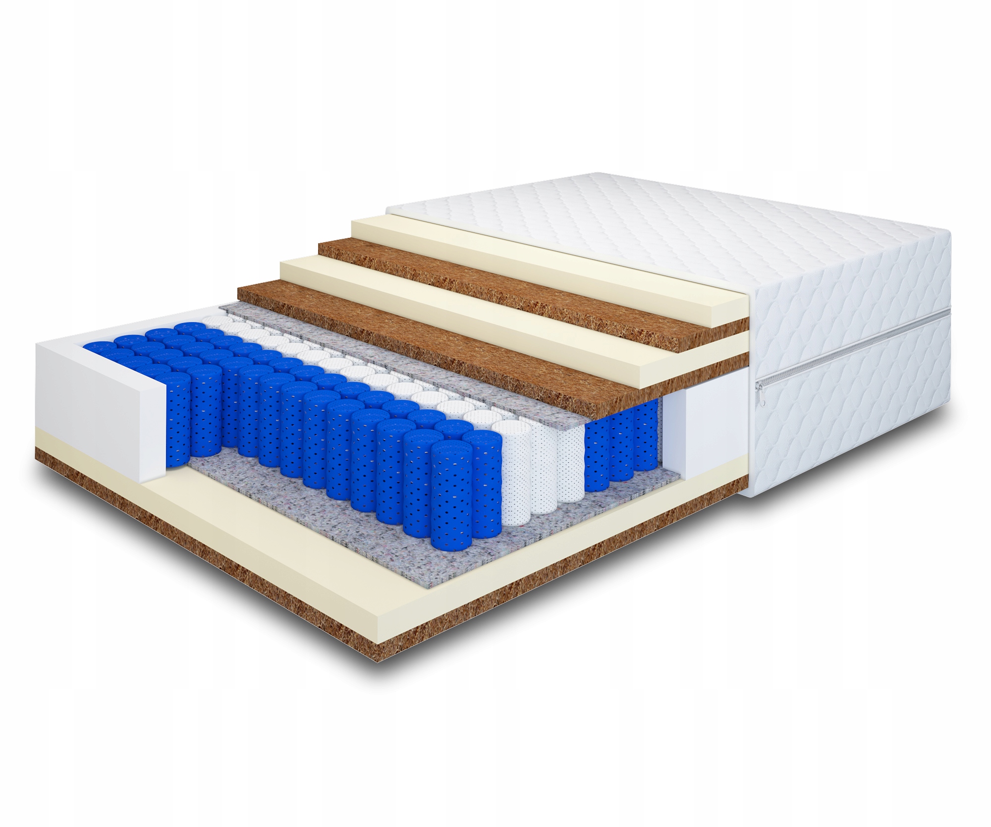 Warstwy kokosu lateksowanego 1200 g/m2 – jest to naturalny surowiec, jego włókna są trwałe, elastyczne i za razem lekkie i przewiewne. Materiał ten charakteryzuje się wysoką odpornością na odkształcenia i zawilgocenie. Funkcją maty kokosowej jest przede wszystkim utwardzenie powierzchni materaca i jego usztywnienie oraz zapobieganie nadmiernemu zawilgoceniu przez poprawienie cyrkulacji powietrza. Włókna kokosu posiadają właściwości antyalergiczne, zapobiegają rozwojowi grzybów i roztoczy.
