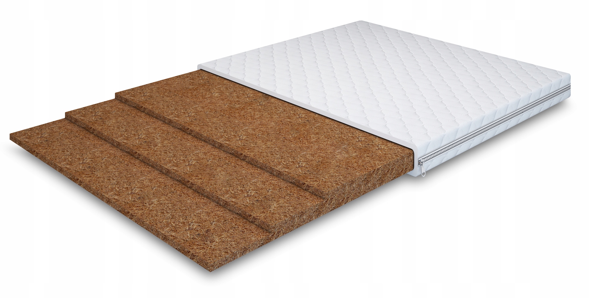 Materac nawierzchniowy został w całości wykonany z kokosu lateksowanego – materiału bardzo trwałego i odpornego na odkształcenia.